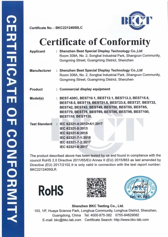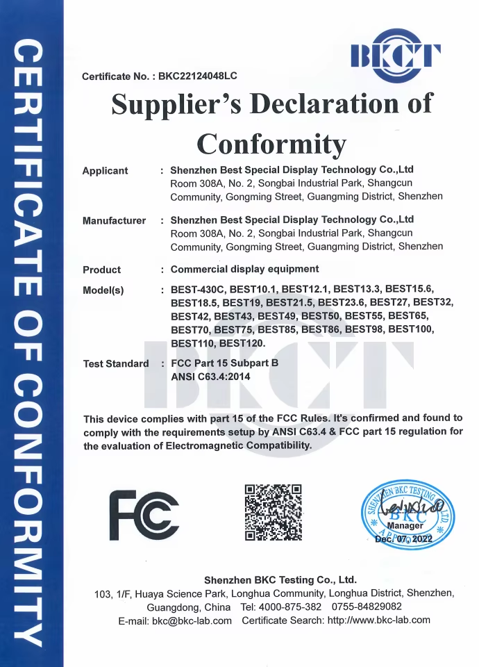 Shenzhen Best Special Display Technology Co., Ltd es una empresa profesional dedicada a la investigación, el desarrollo, la producción y las ventas de equipos de visualización comercial.Nuestra fábrica puede proporcionar a los clientes 10.1 pulgadas a 115 pulgadas profesional de interior / exterior de señalización digital LCD personalizada y pantalla LED personalizada. con más de 10 años de diseño de pantalla LCD / LED y el desarrollo de expenence!